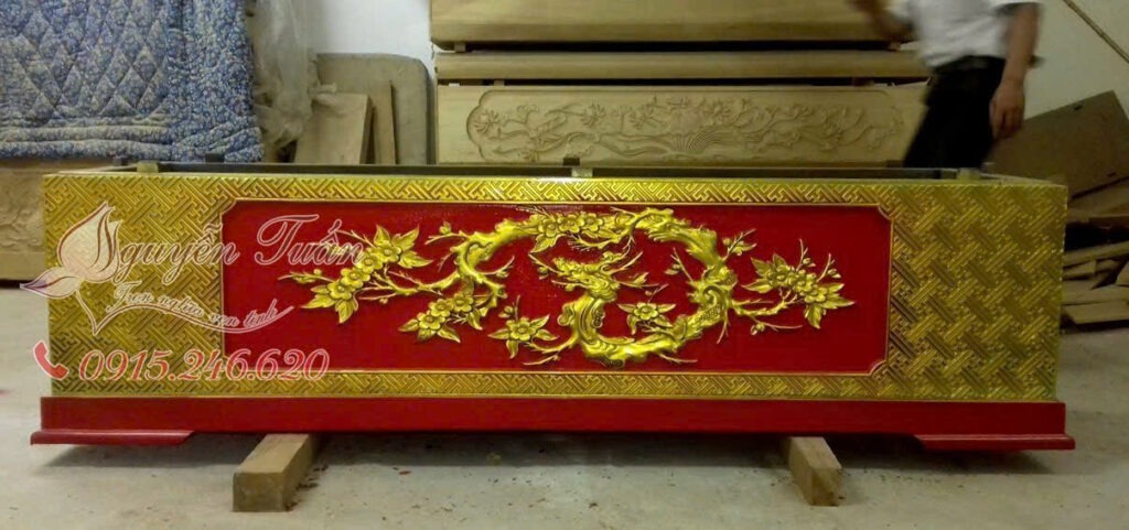 Áo Quan Gỗ Vàng Tâm Chạm Sen, Lắp Chạm Sen Khắc Chữ