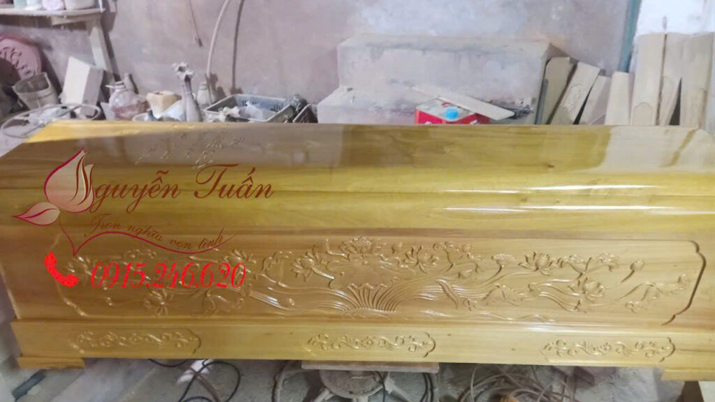 Áo Quan Gỗ Vàng Tâm, Hai Thành Chạm Sen, Lắp Chạm Sen (Mã 02)