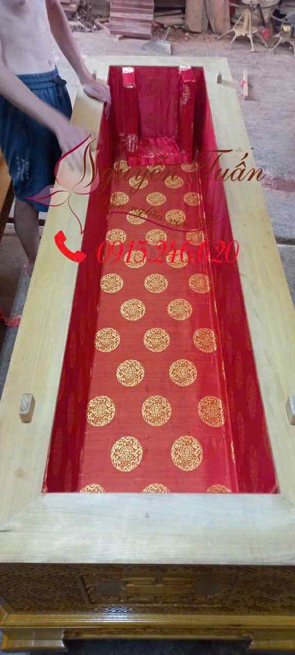 - Chất liệu: Áo Quan được làm từ gỗ Vàng Tâm tự nhiên 100%, khai thác tại các tỉnh trung du – miền núi Việt Nam. Sản phẩm cam kết chuẩn gỗ Vàng Tâm, không mọt nước, không gỗ giác, không hà rồ, không thâm đen và không nứt tách, đảm bảo độ bền chắc.