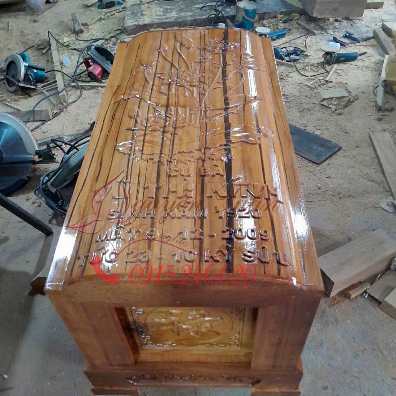 - Chất liệu: Quách được làm từ gỗ Ngọc Am tự nhiên 100%, khai thác tại các tỉnh trung du – miền núi Việt Nam. Sản phẩm cam kết chuẩn gỗ Ngọc Am, không mọt nước, không gỗ giác, không hà rồ, không thâm đen và không nứt tách, đảm bảo độ bền chắc.