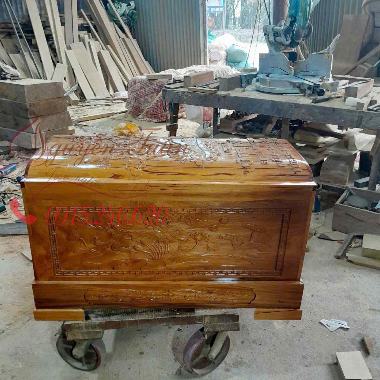 Quách gỗ Ngọc Am chạm sen là một trong những dòng sản phẩm đồ gỗ tâm linh của Tiểu quách Nguyễn Tuấn. Hoa sen từ lâu đã gắn bó mật thiết với văn hóa tâm linh Việt, đặc biệt trong Phật giáo, tượng trưng cho sự thanh khiết, giác ngộ và tâm hồn hướng thiện. Việc chạm khắc hoa sen trên quách không chỉ tôn vinh vẻ đẹp tinh xảo mà còn gửi gắm nhiều ý nghĩa cao quý.