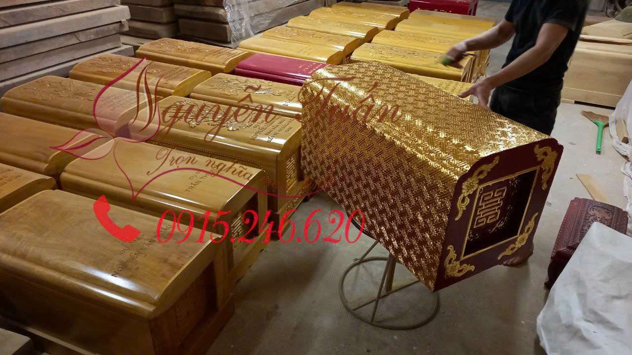 Tư vấn miễn phíQuách Gỗ Vàng Tâm Chạm Gấm Sơn Son Thiếp Vàng