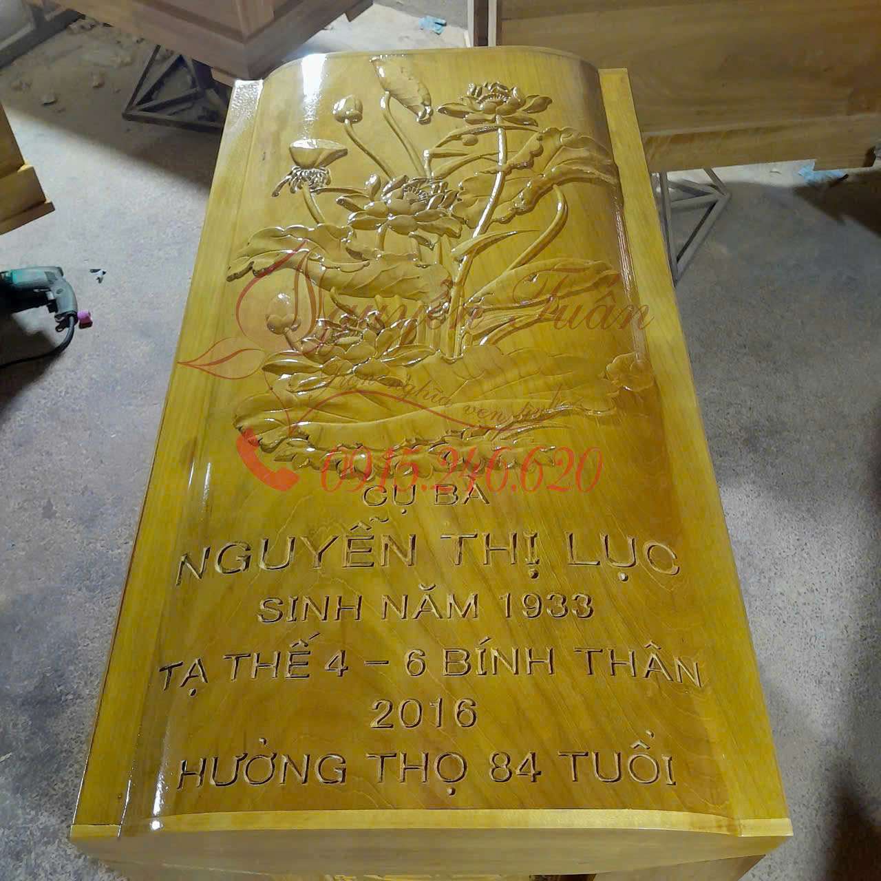 Tư vấn miễn phíQuách Gỗ Vàng Tâm Hai Thành Chạm Phượng,Lắp Chạm Sen
