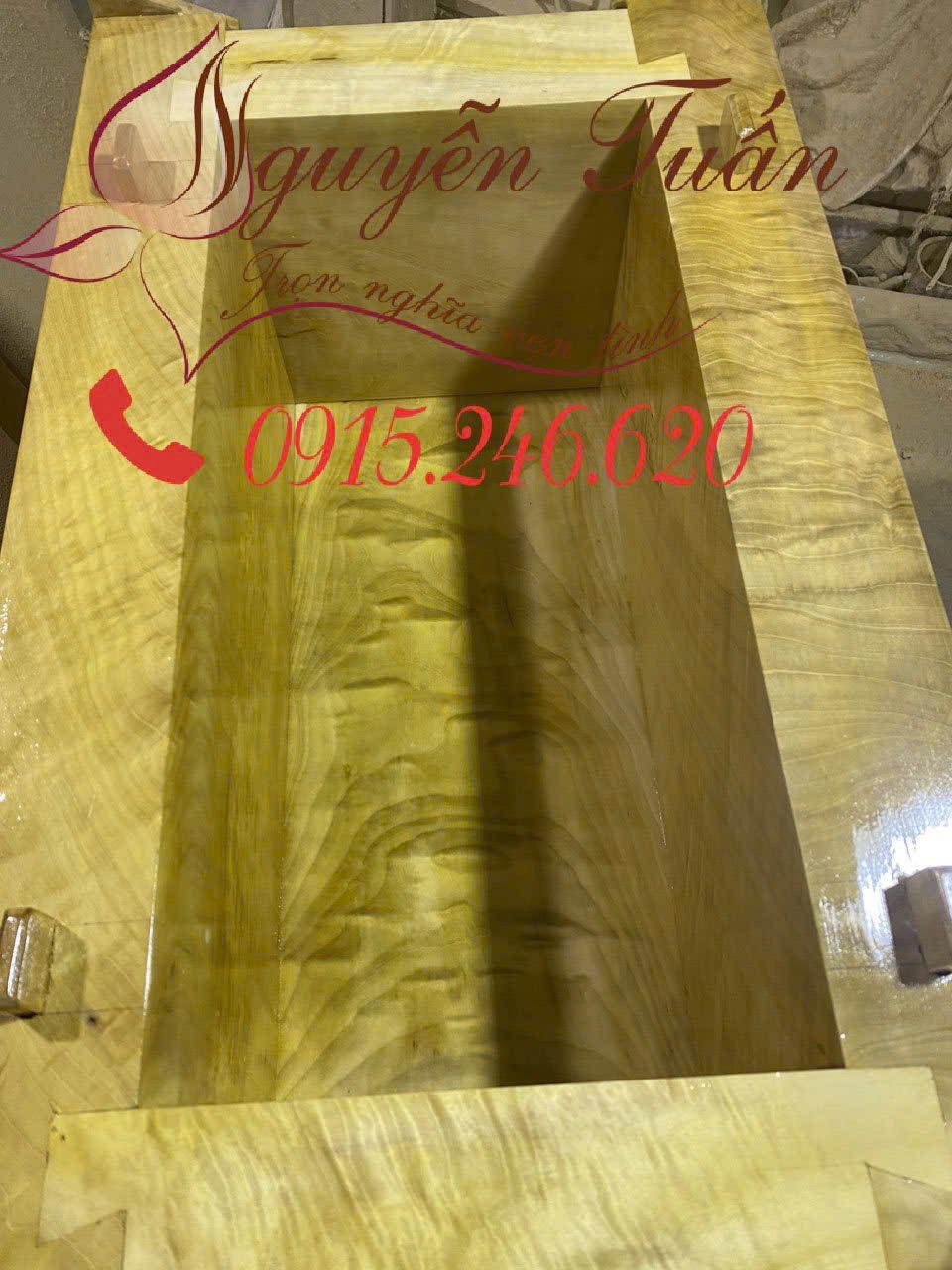 - Chất liệu: Quách được làm từ gỗ Vàng Tâm tự nhiên, khai thác tại các tỉnh trung du – miền núi Việt Nam. Sản phẩm cam kết chuẩn gỗ Vàng Tâm, không mọt nước, không gỗ giác, không hà rồ, không thâm đen và không nứt tách, đảm bảo độ bền chắc.